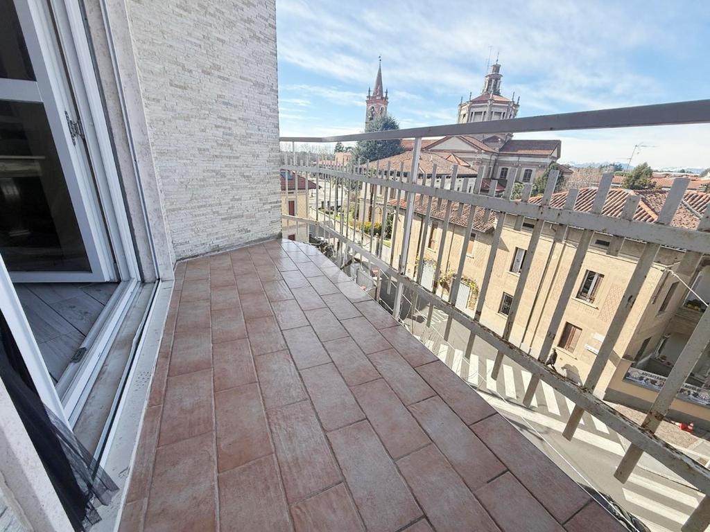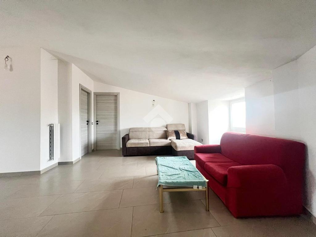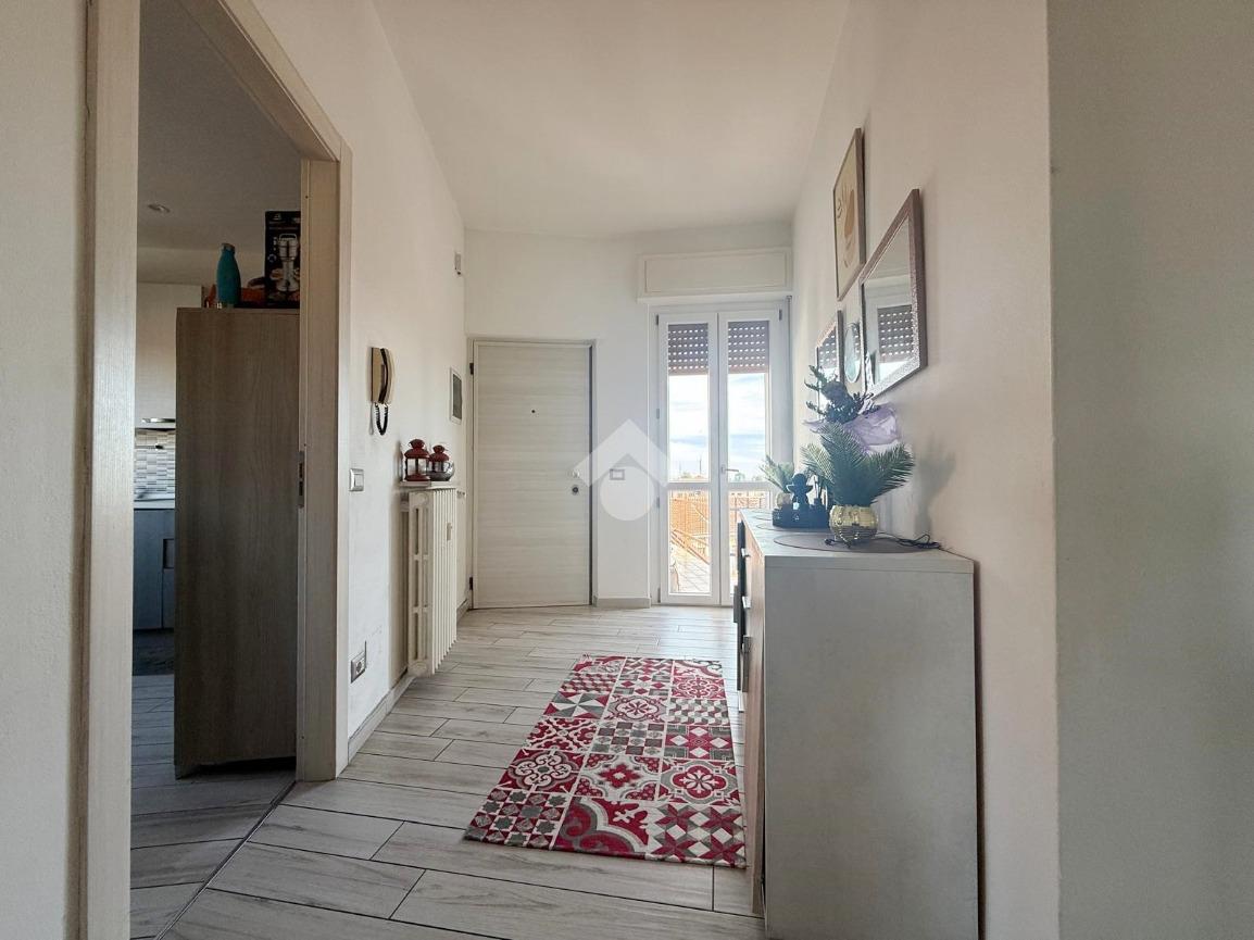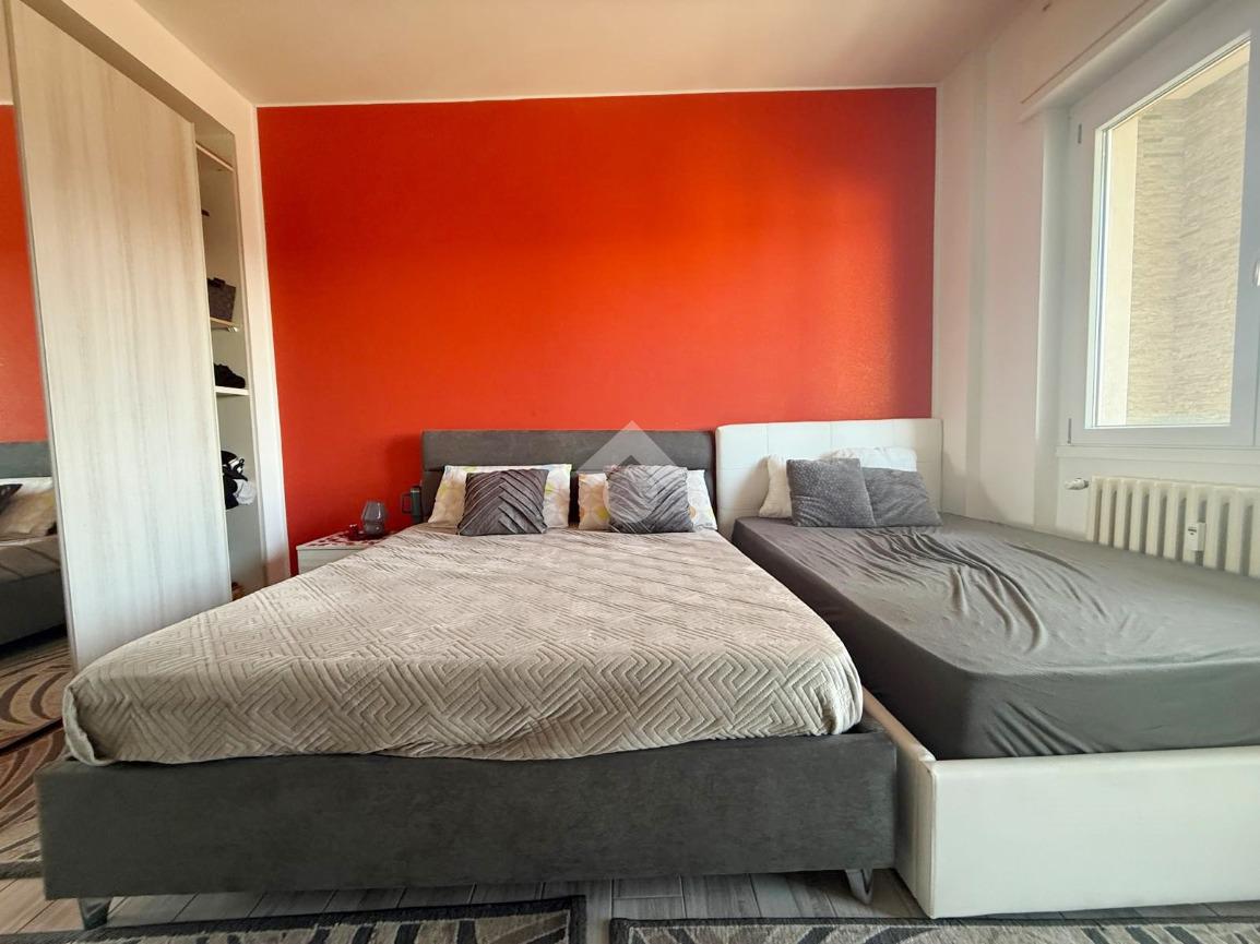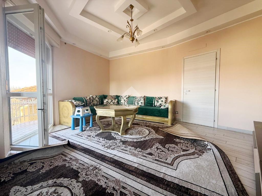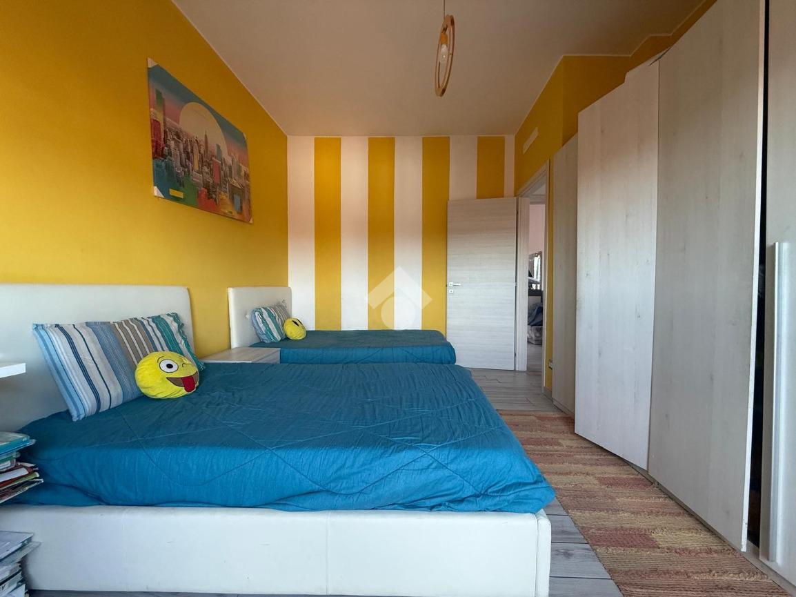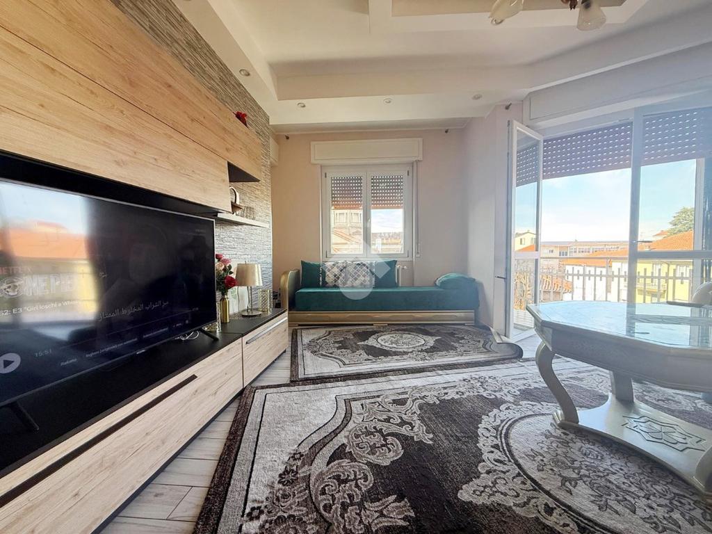 L'appartamento presenta una luminosa zona giorno completa di comoda cucina abitabile e balconi con vista sul castello; la zona notte ospita due camere da letto oltre servizi.